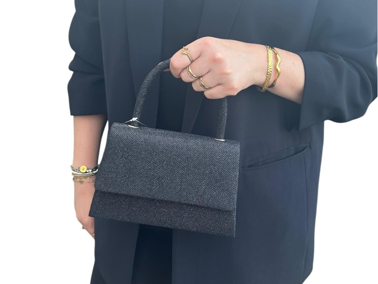 Maak je outfit helemaal af met dit schitterende zwart glittertasje!